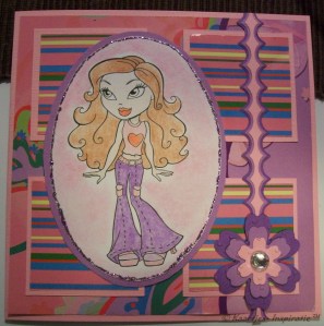 Ik heb als afdrukje een kleurplaat verkleind van Bratz van www.kids-n-fun.nl .