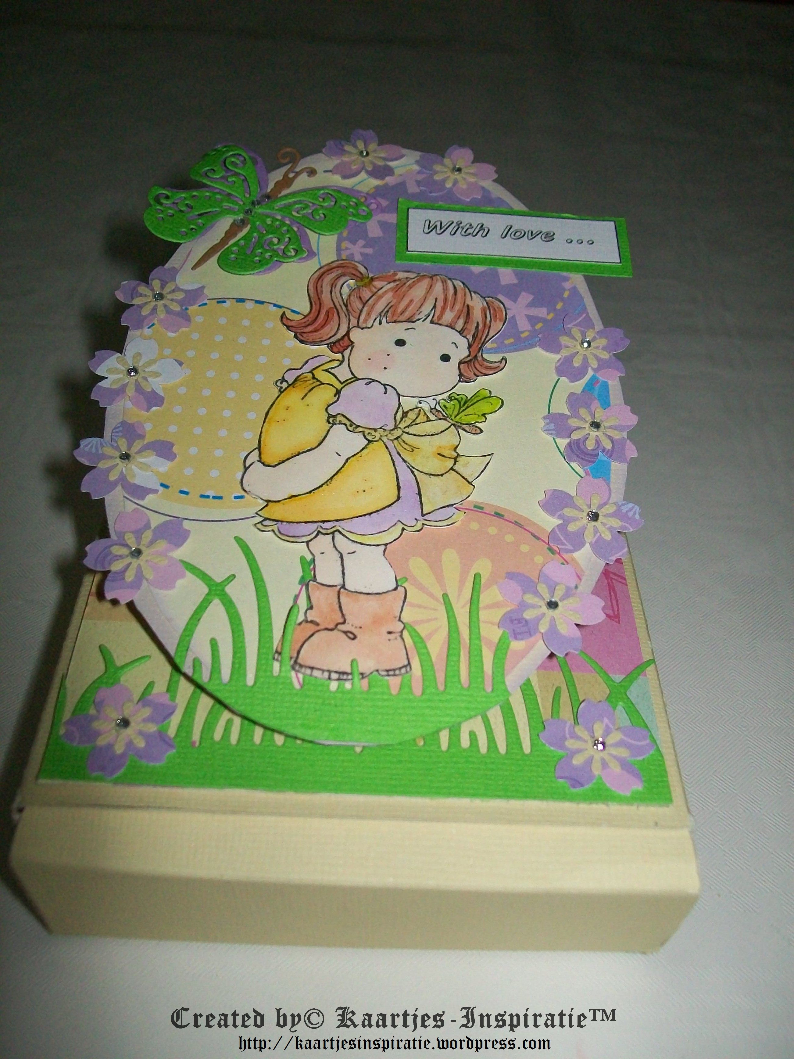 The butterflie I had also bought at the Knotsgekke kaarten en Scrapdagen. I find him so cute and just had to have it. Have lately quite a soft spot for butterflies!