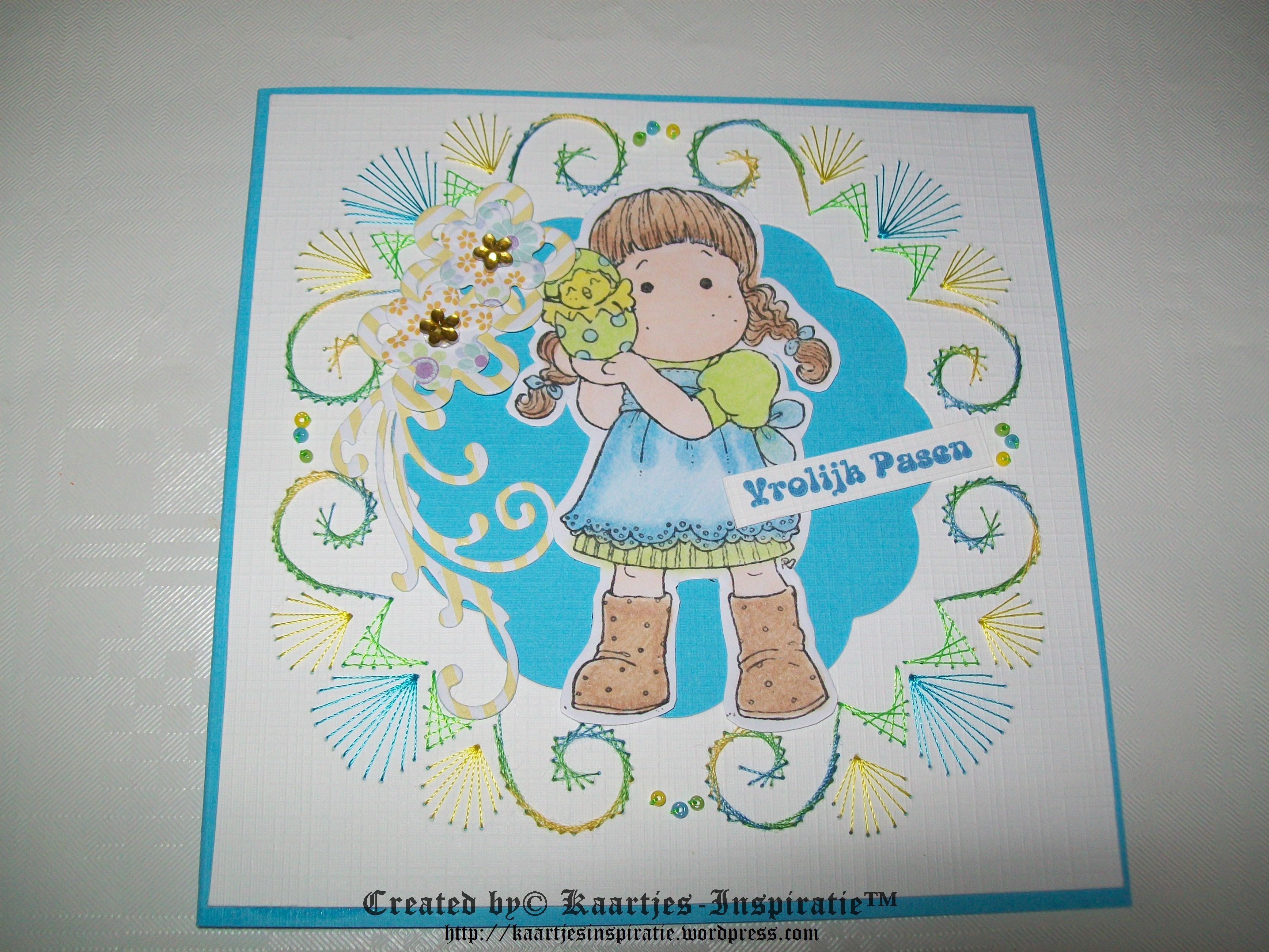 About 2 weeks ago I made a card with an embroidery pattern that I had requested at the club Mijn Kaarten Clubje and because it’s Easter, I share this card with you and also I want to wish you a Happy Easter.
