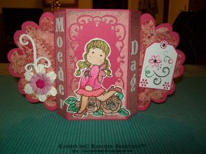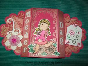 Scrappapier is van Janneke Brinkman- Tsjebbes en van een blok wat ik bij de Action heb gekocht. De ge-emboste randen met de hand ge-embost m.b.v. een mal van Joy-Crafts,ook de tekst voor moeder heb ik ge-embost,en daarna bewerkt met Stickles.