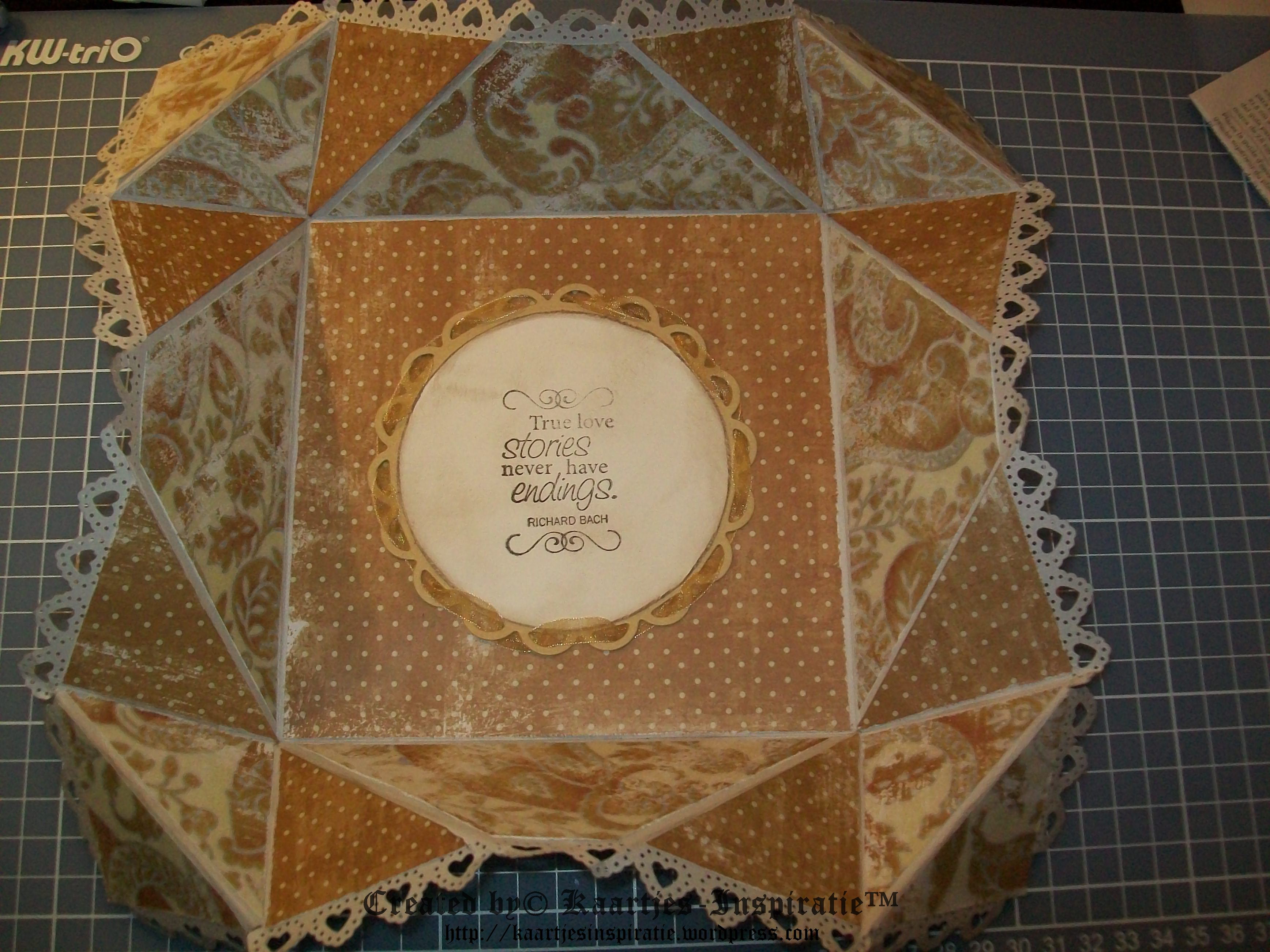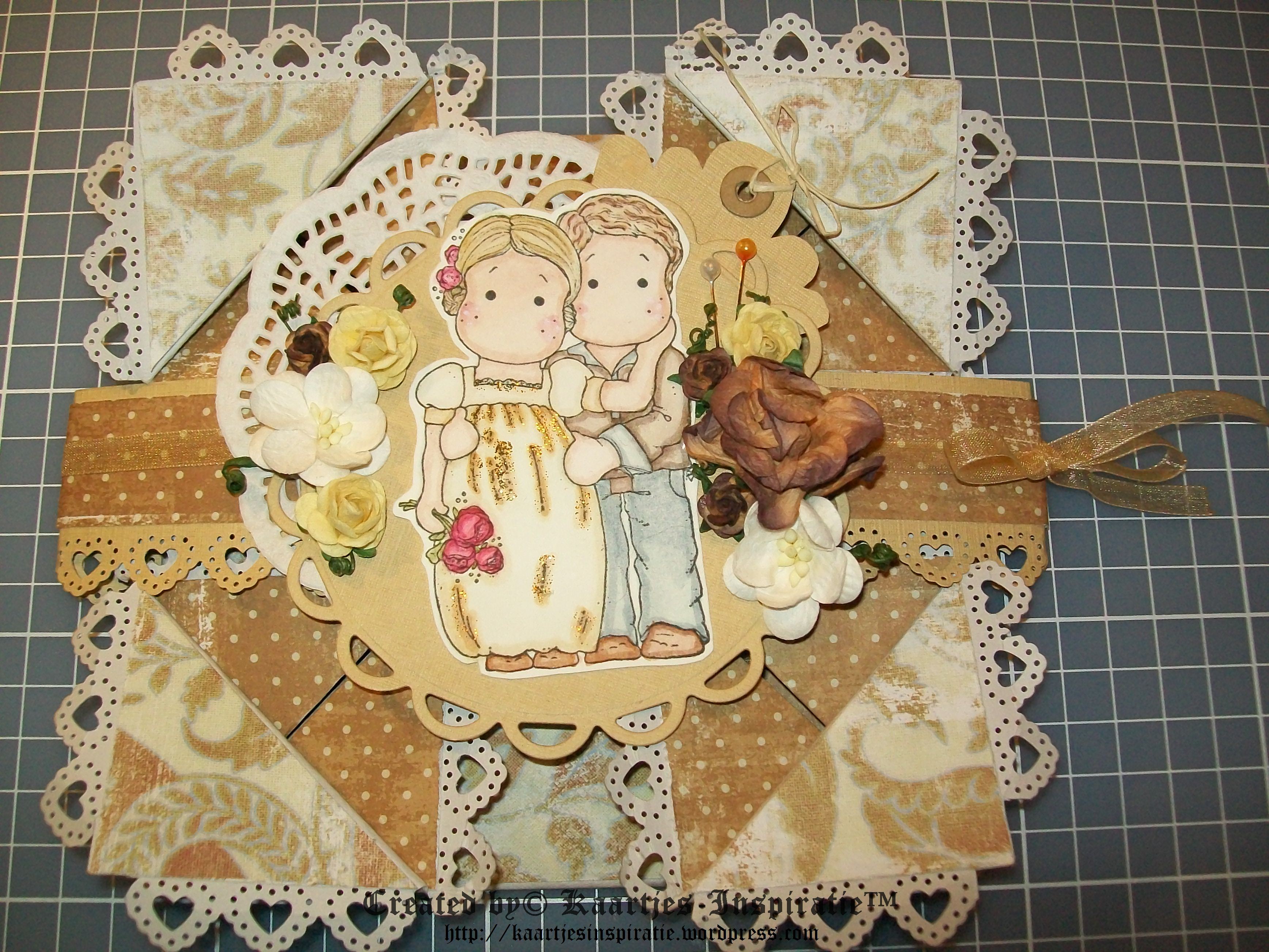 Het trouwkaartje is een Napkin Fold Card, dit naar een idee uit het Magnolia Ink Magazine No2 van 2012.