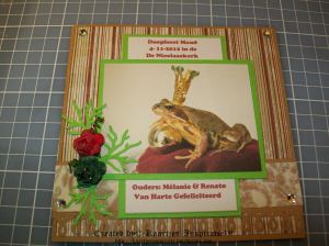 Gisteren maar even gevraagd of ze wat aanwijzingen voor me had, en toen zei ze dat ze het leuk vond als ik een kaart zou maken met de kikker en de gouden bal.