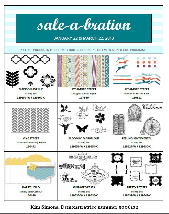 Vanaf 22 januari tot met 22 maart gaat bij Stampin’Up de Sale-a-Bration actie van start.