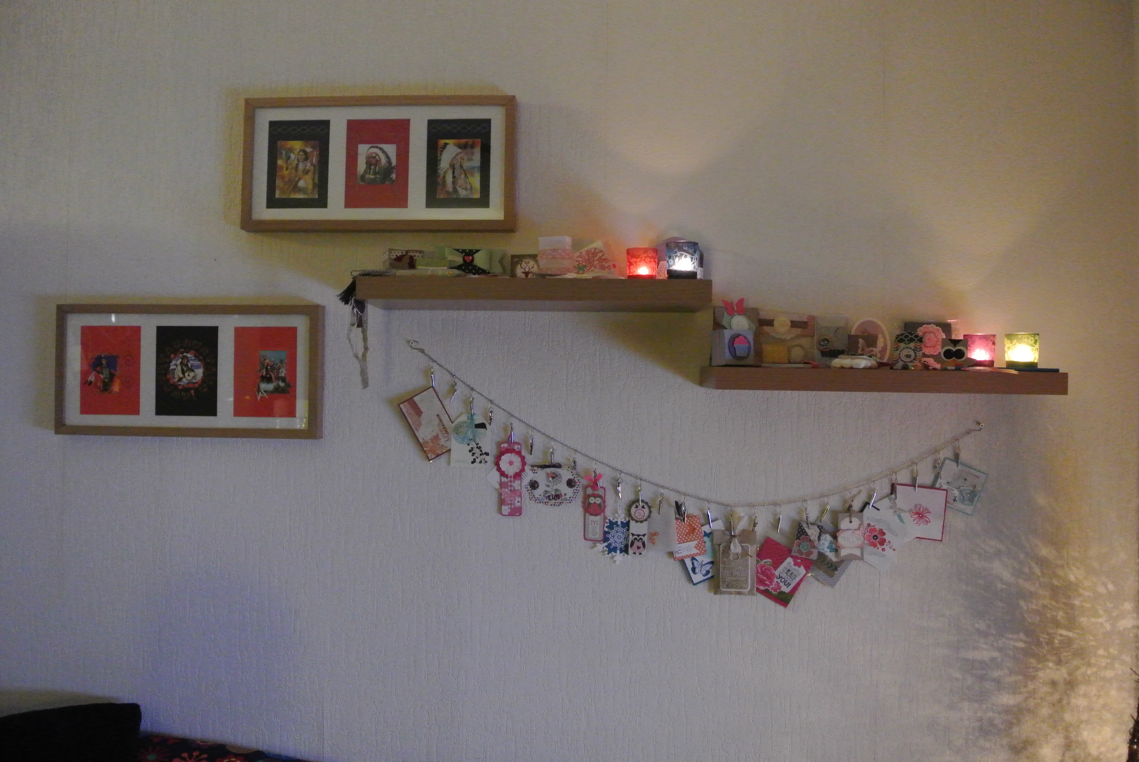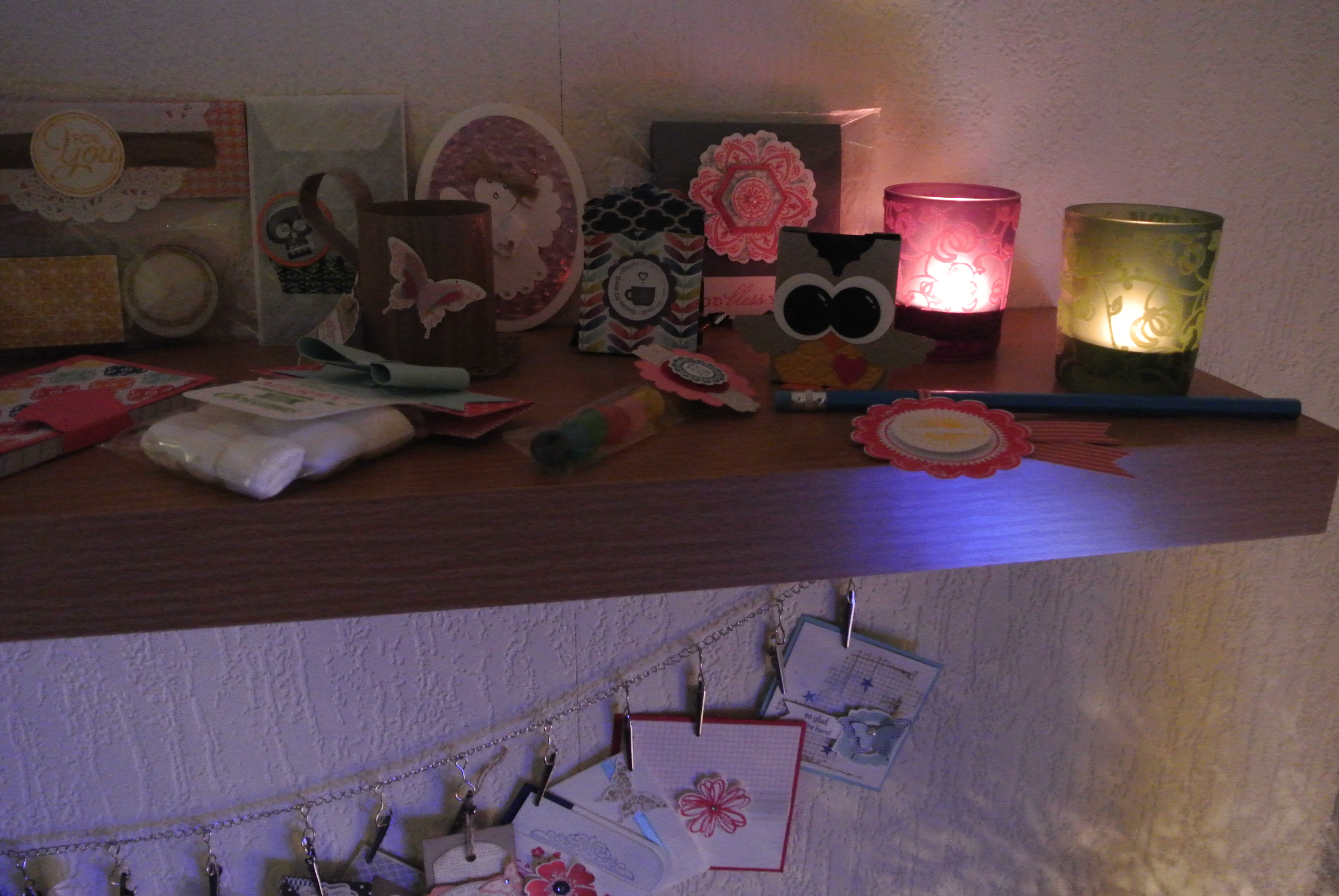 Zoals jullie weten had ik veel geswapt bij het  Stampin’Up! ® event in Apeldoorn, en ik vond het erg jammer om maar alles in een doos te laten liggen, dus heb hier een speciale plek voor gecreërd in de woonkamer, uiteraard met hulp van mijn vriend, want die heeft voor mij de meubelpanelen moeten ophangen en spijkers, of nagels in de muur moeten bevestigen.