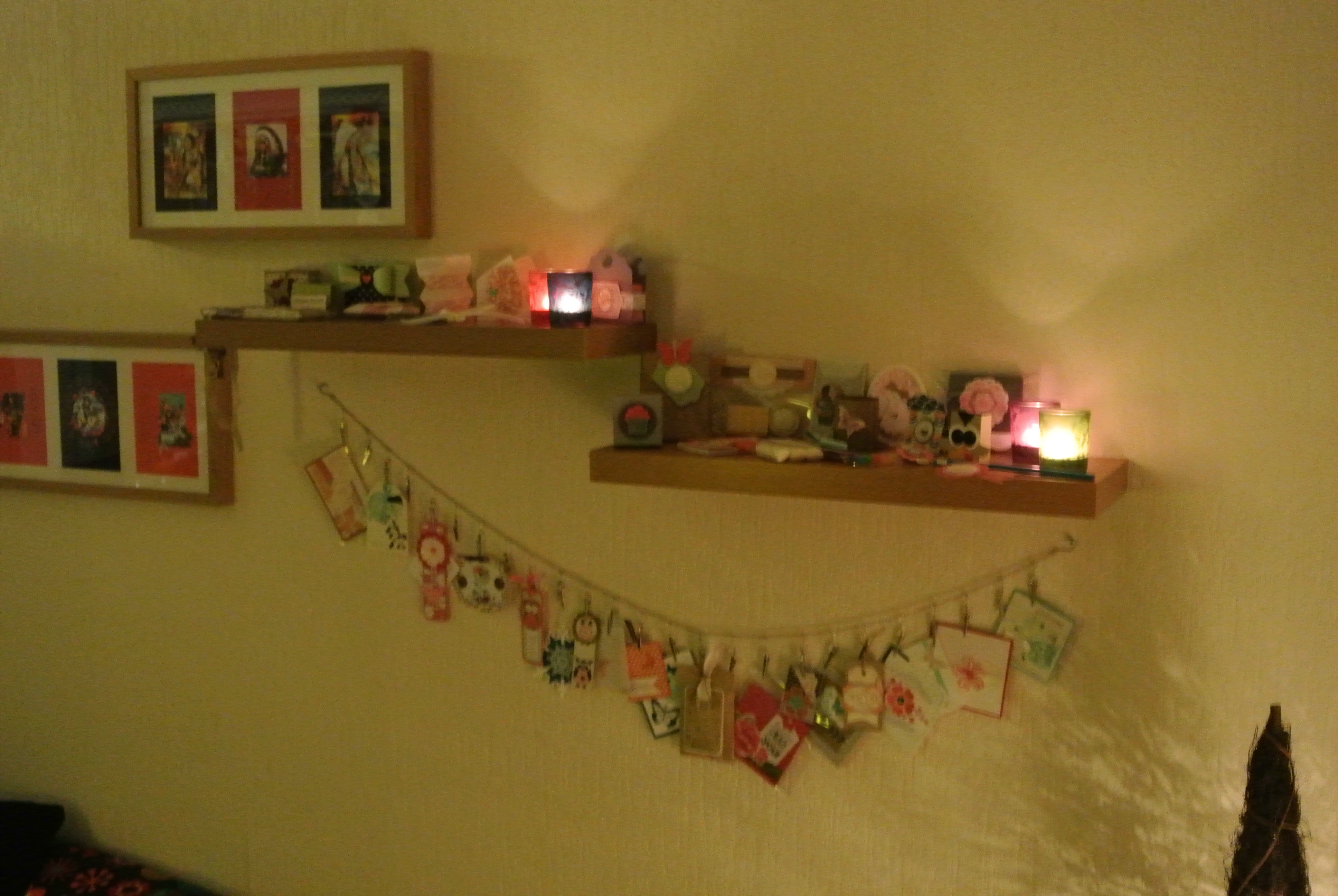 As you know I had swapped a lot at the Stampin’Up! ® event in Apeldoorn, and I found it very sorry to lie everything in a box,  so because of that I’ve a special place created in the living room, of course with the help of my friend, because he had to hang up  the furniture panels  and nails, or nails in the wall to confirm.