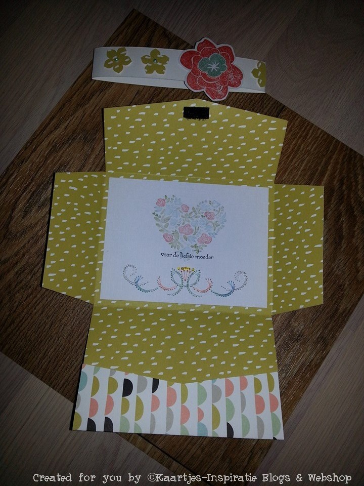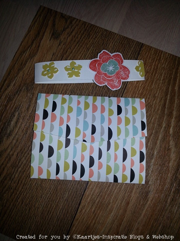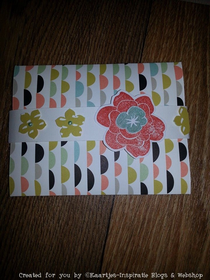 Bij deze giftcard-enveloppe, heb ik voornamelijk gewerkt met Stampin’Up!® materialen, wat ik heb gecombineerd met borduren.