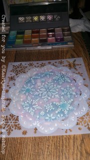 Daarna probeerde ik de schulpjes aan de buitenkant ook met oogschaduw te kleuren, alleen werkte dit helaas niet zoals ik voor ogen had, dus toen met een sponge-douber en stempelinkt aan de slag gegaan wat je op de foto hieronder kan zien.