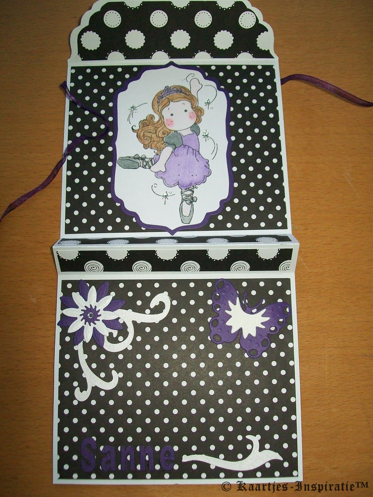 Om het kaartje te sluiten heb ik paars organzalint gebruikt.
