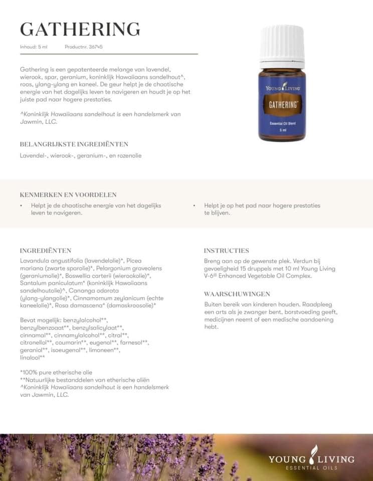 Gathering™ essentiële olie melange is een combinatie van negen essentiële oliën die een aroma creëert om gelijkgestemde mensen samen te brengen op een fysiek, emotioneel, mentaal, sociaal en spiritueel niveau, waardoor je boven de chaotische energieën van de wereld van vandaag kunt uitstijgen en een plaats van spirituele vrede kunt vinden.